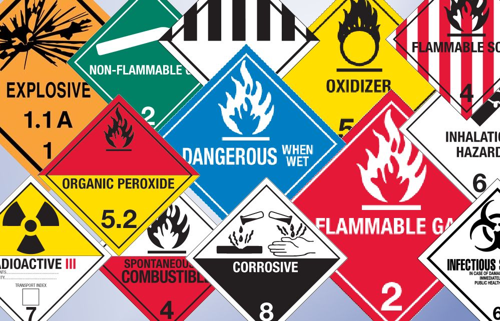 “Dangerous goods may include substances that are Explosive, Gases, Flammable, Oxidizing Substances and Organic Peroxides, Toxic and Infectious, Radioactive Material, Corrosives or Environmentally hazardous.